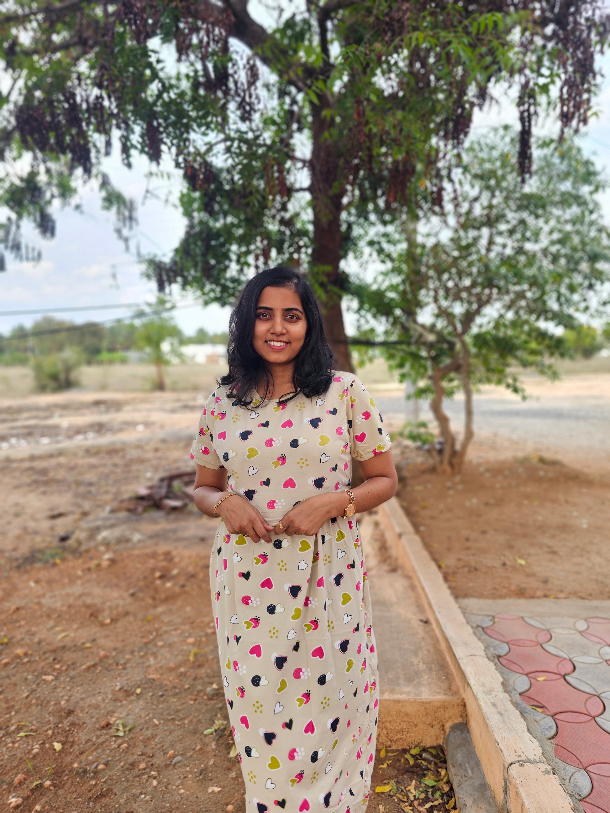 Beige Colorful Hearts - Feeding Lounge Wear