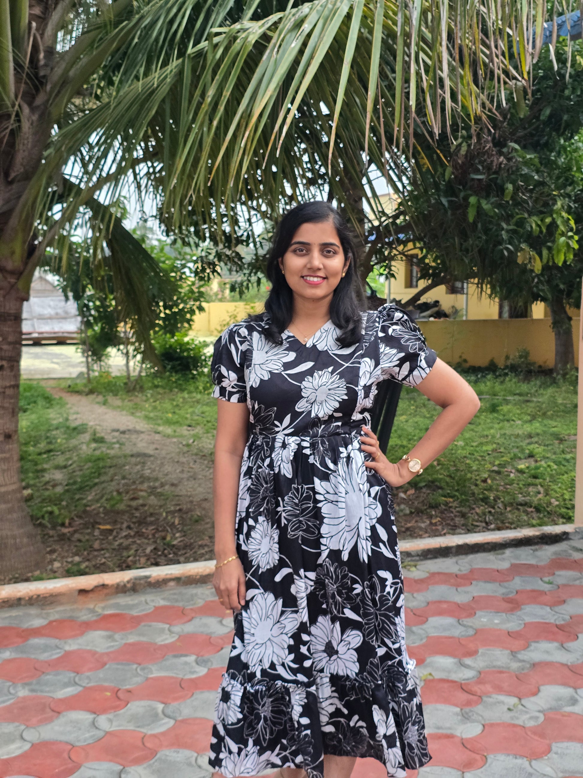 Black and White flower Feeding Maxi with Zip and Full Lining