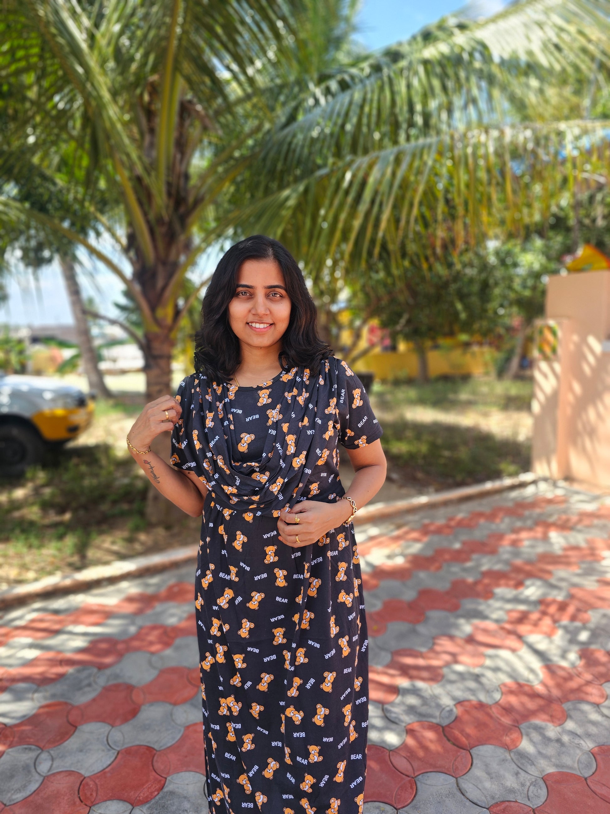 Black Bear - Dupatta Style Feeding Lounge Wear without Zip