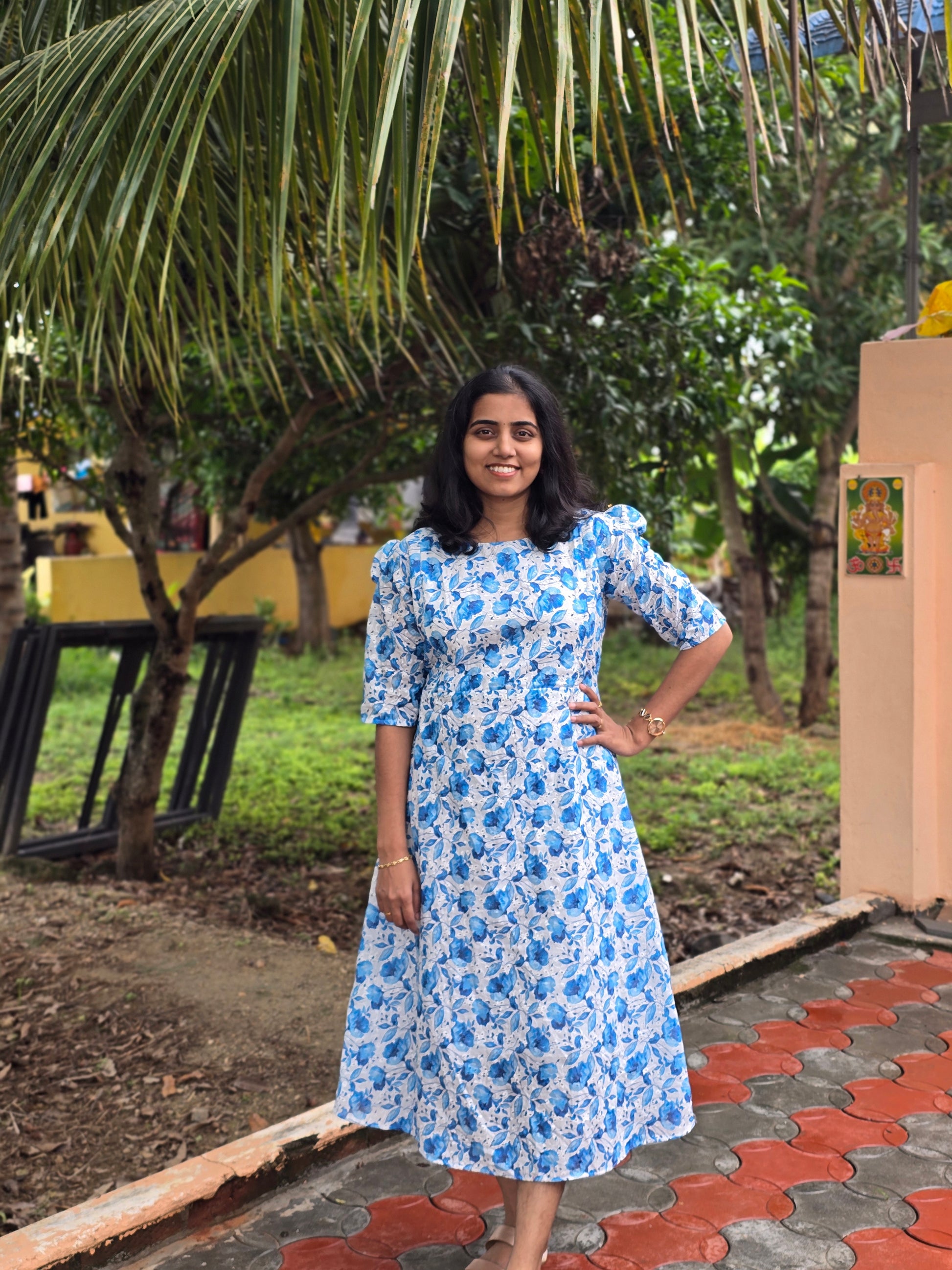 Blue Floral Cotton Hakoba Feeding Maxi with Zip and Full Lining
