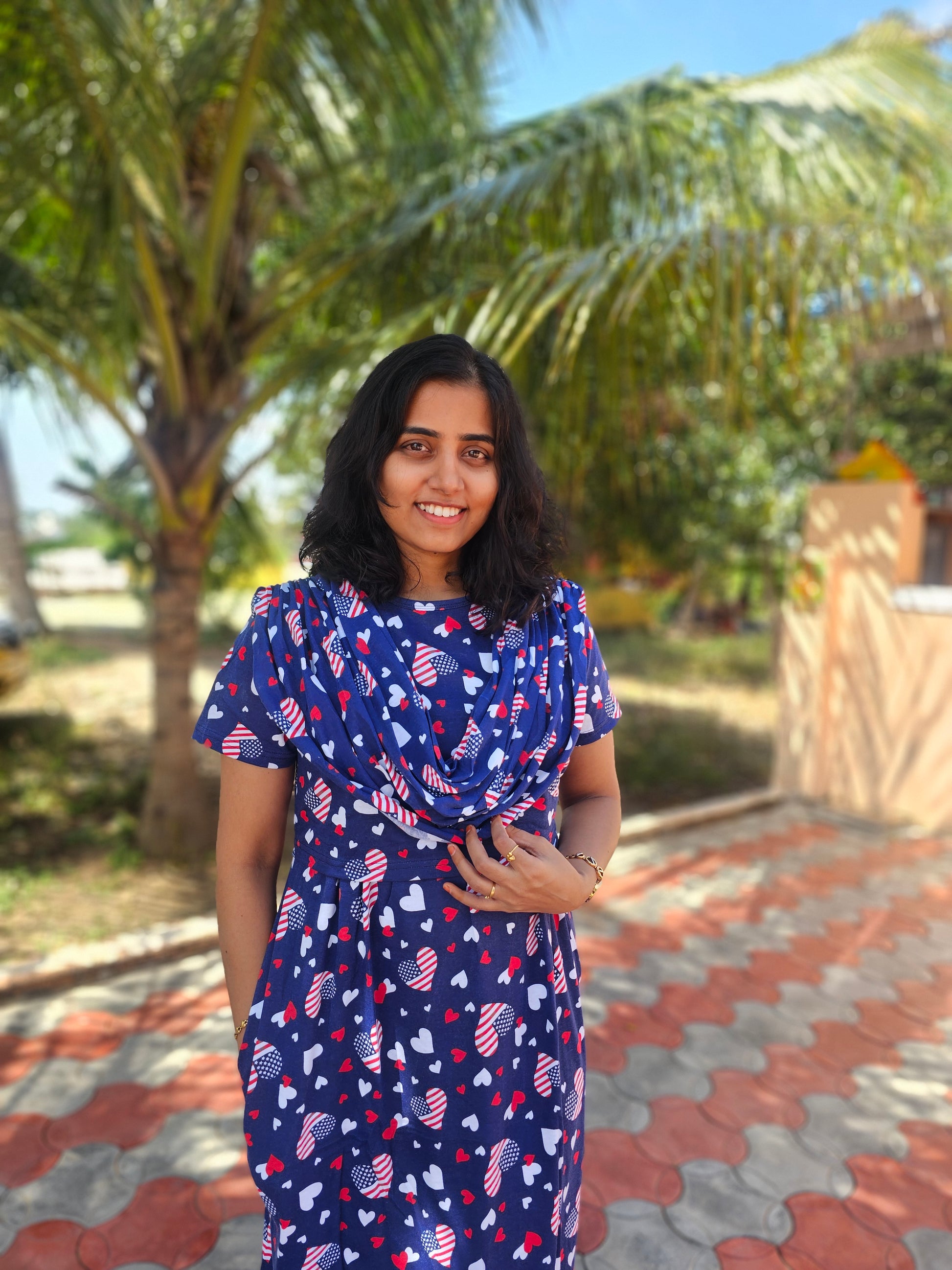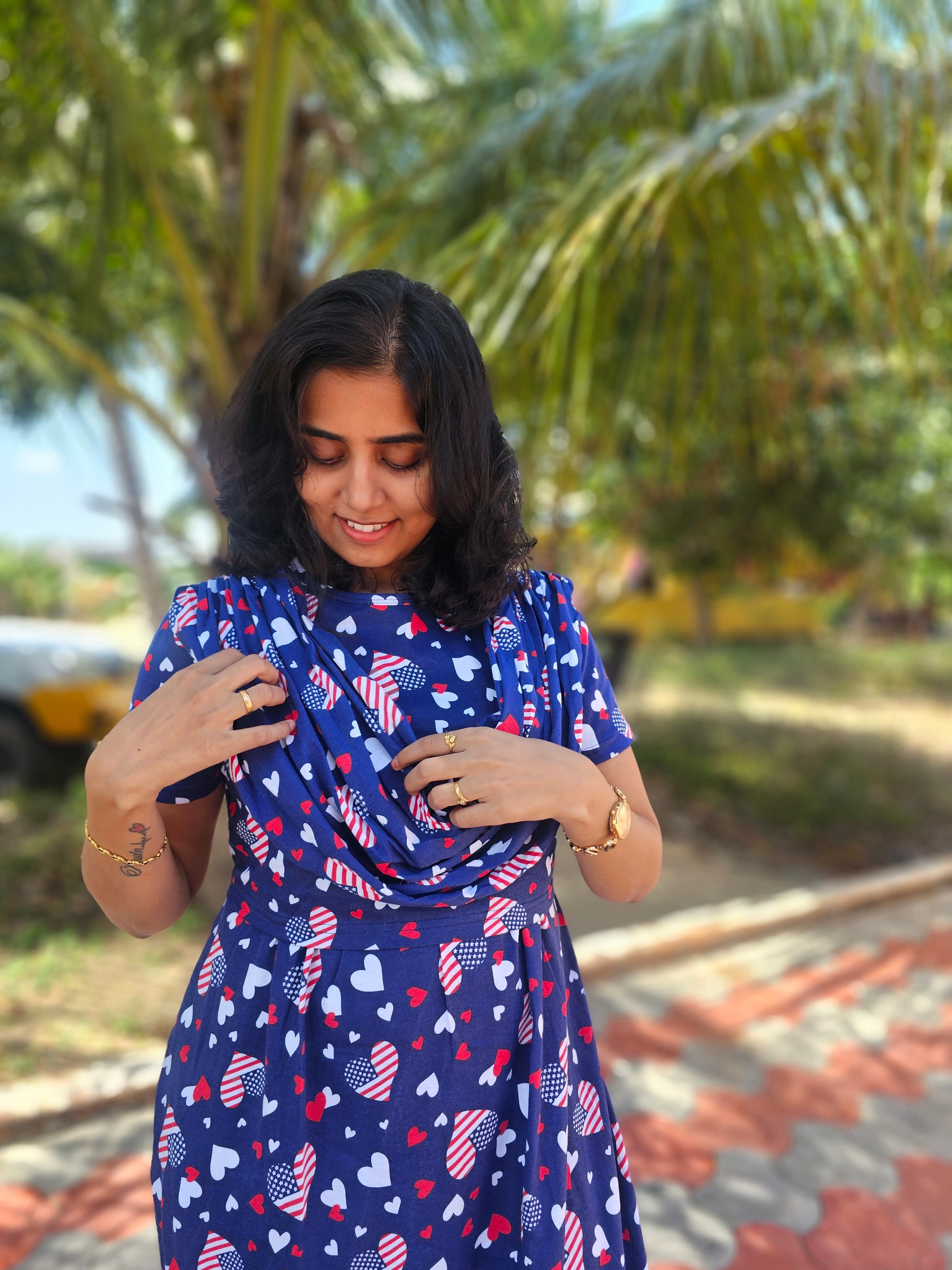 Blue and Red Heart - Dupatta Style Feeding Lounge Wear without Zip