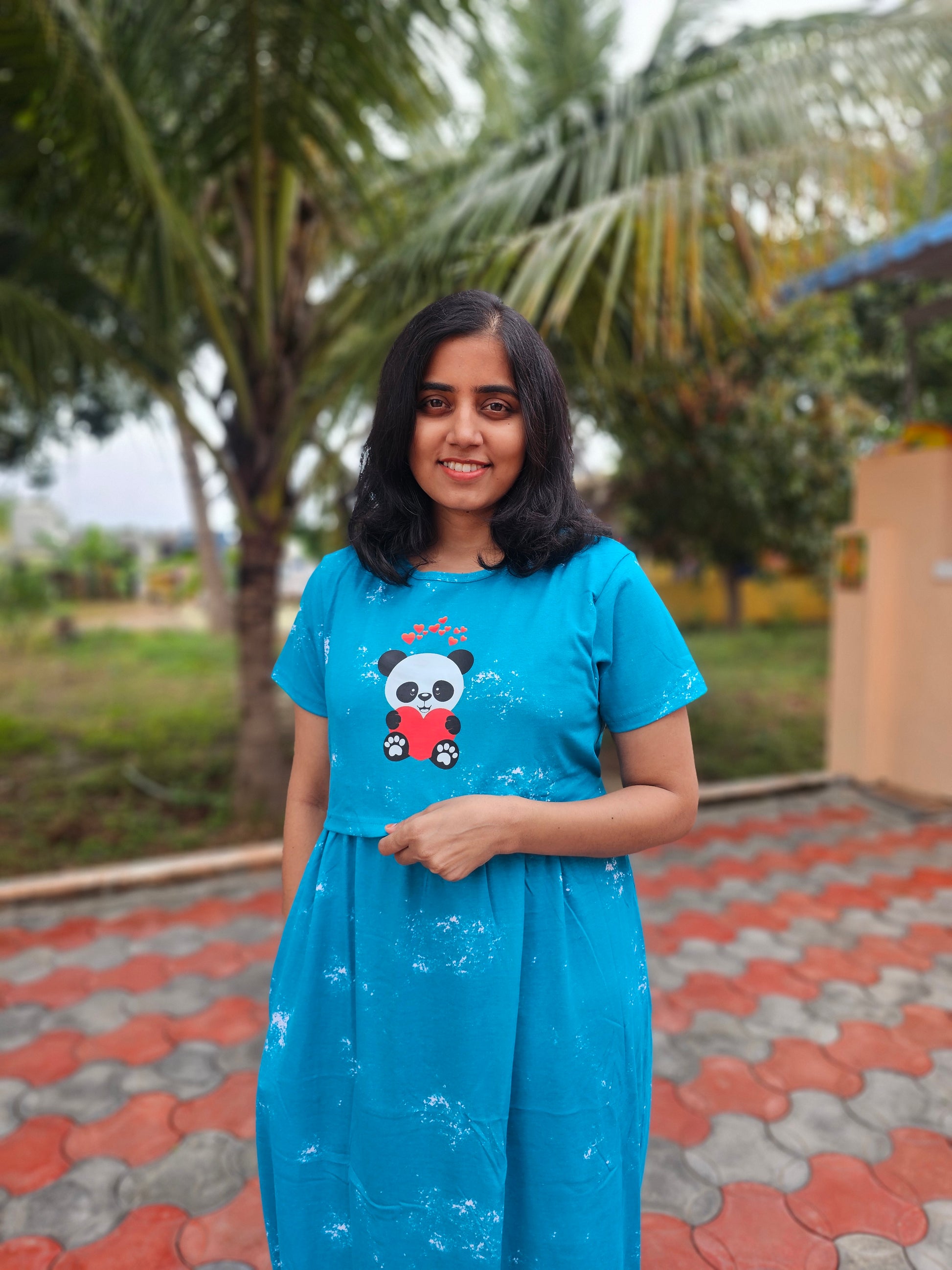 Sea green panda with heart sticker - Zipless Feeding Lounge Wear