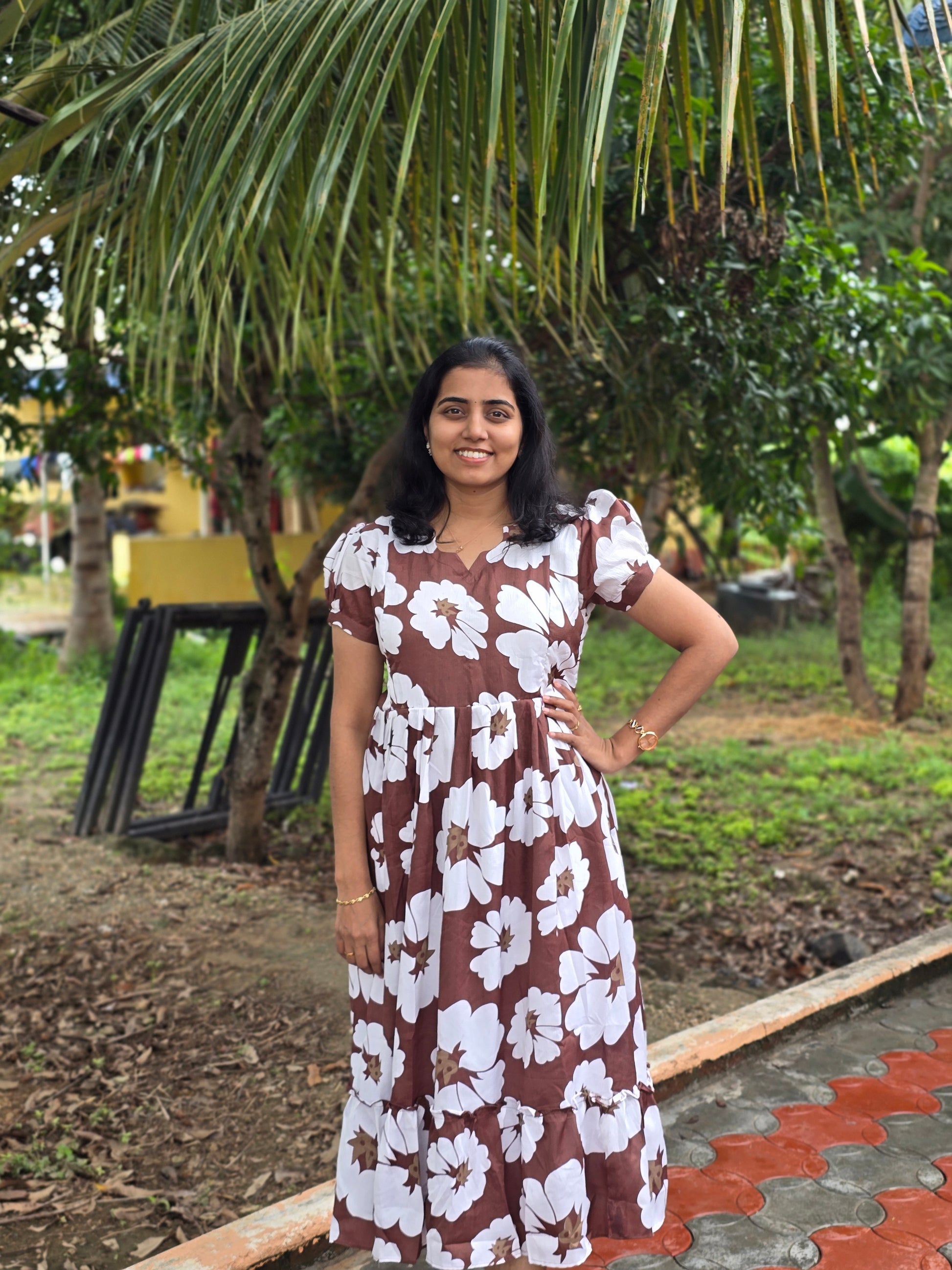 Brown Flowers Feeding Maxi with Zip and Full Lining
