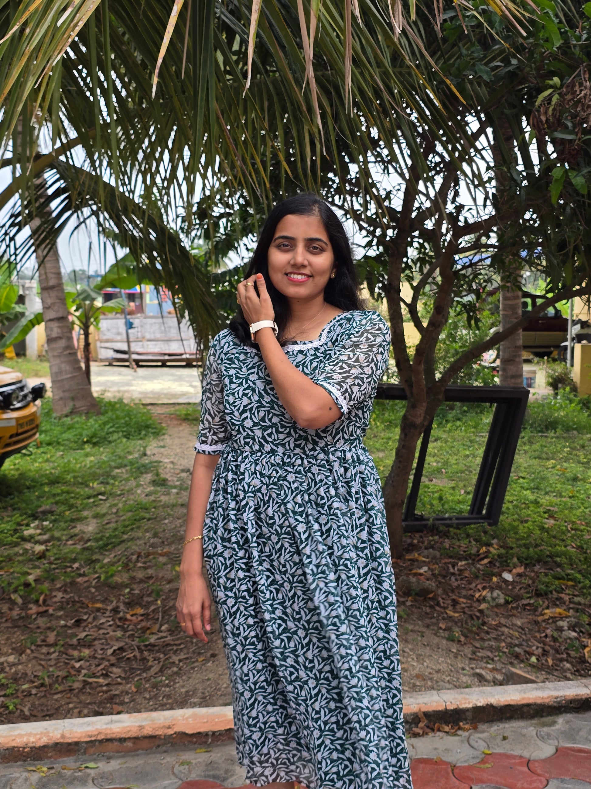 Green Floral with lace border Georgette Feeding Maxi with Zip and Full Lining