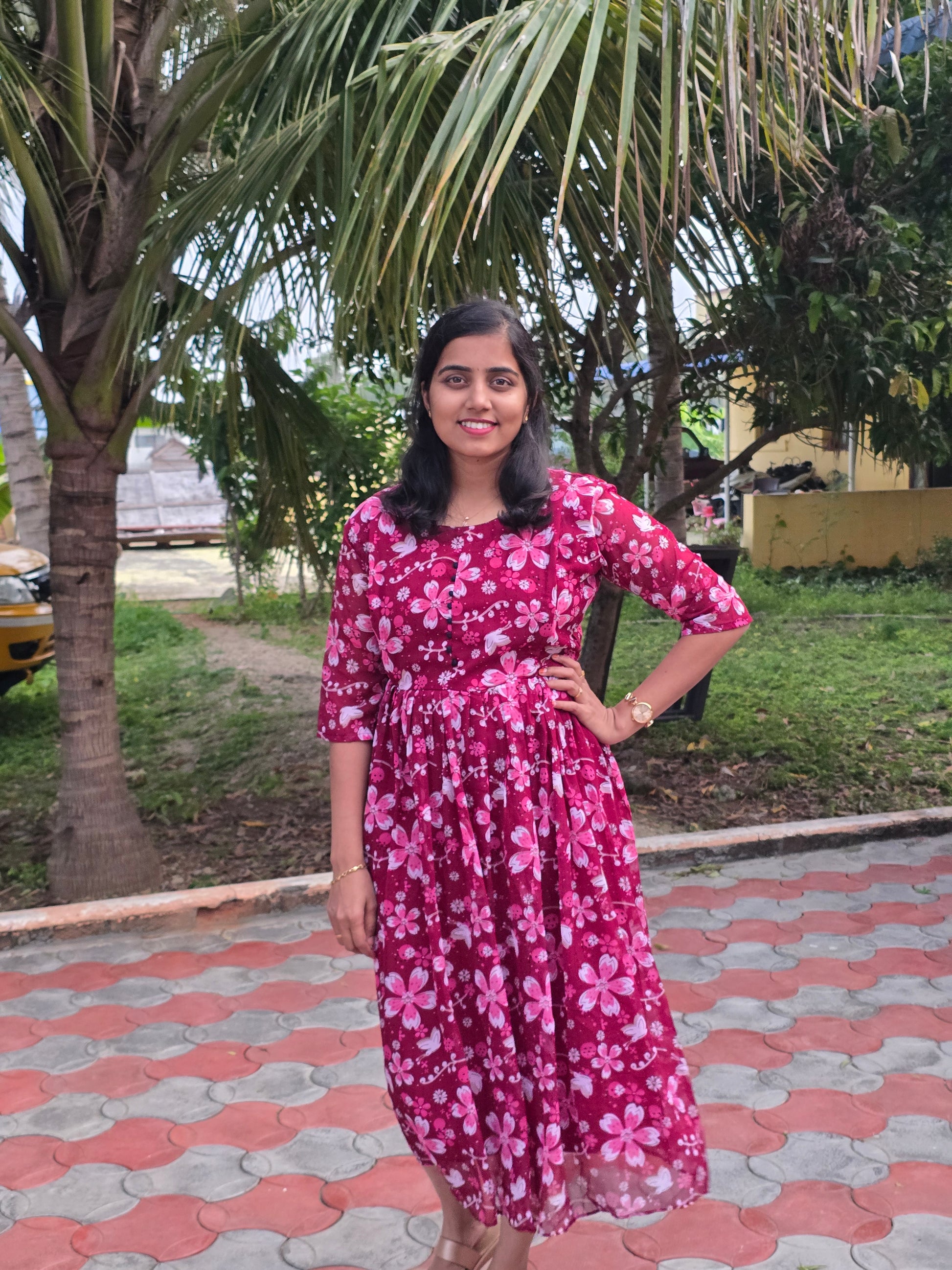 Maroon Floral Georgette Feeding Maxi with Zip and Full Lining