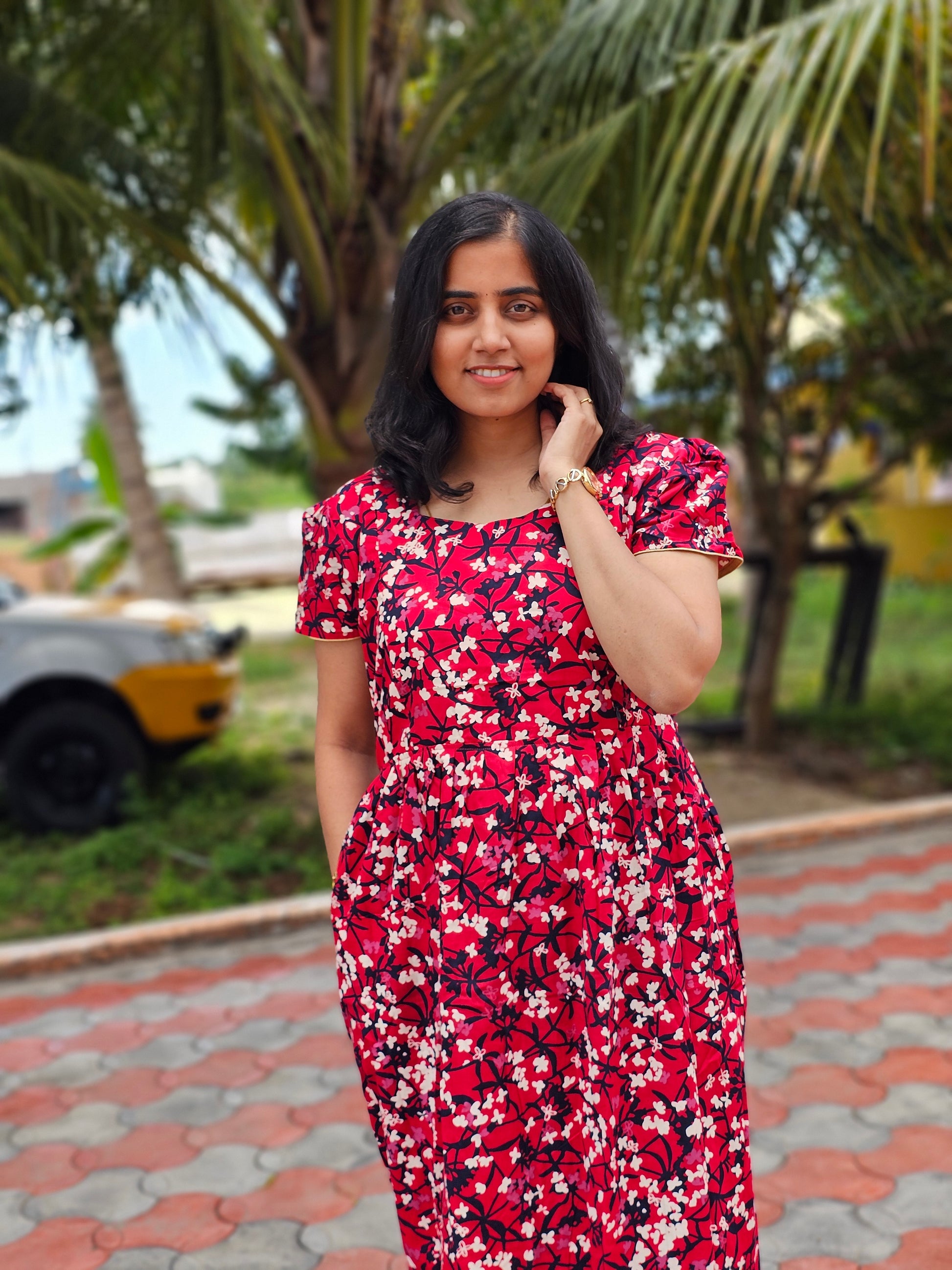 Red Black Flowers Cotton Feeding Kurti with Zip with Top Lining