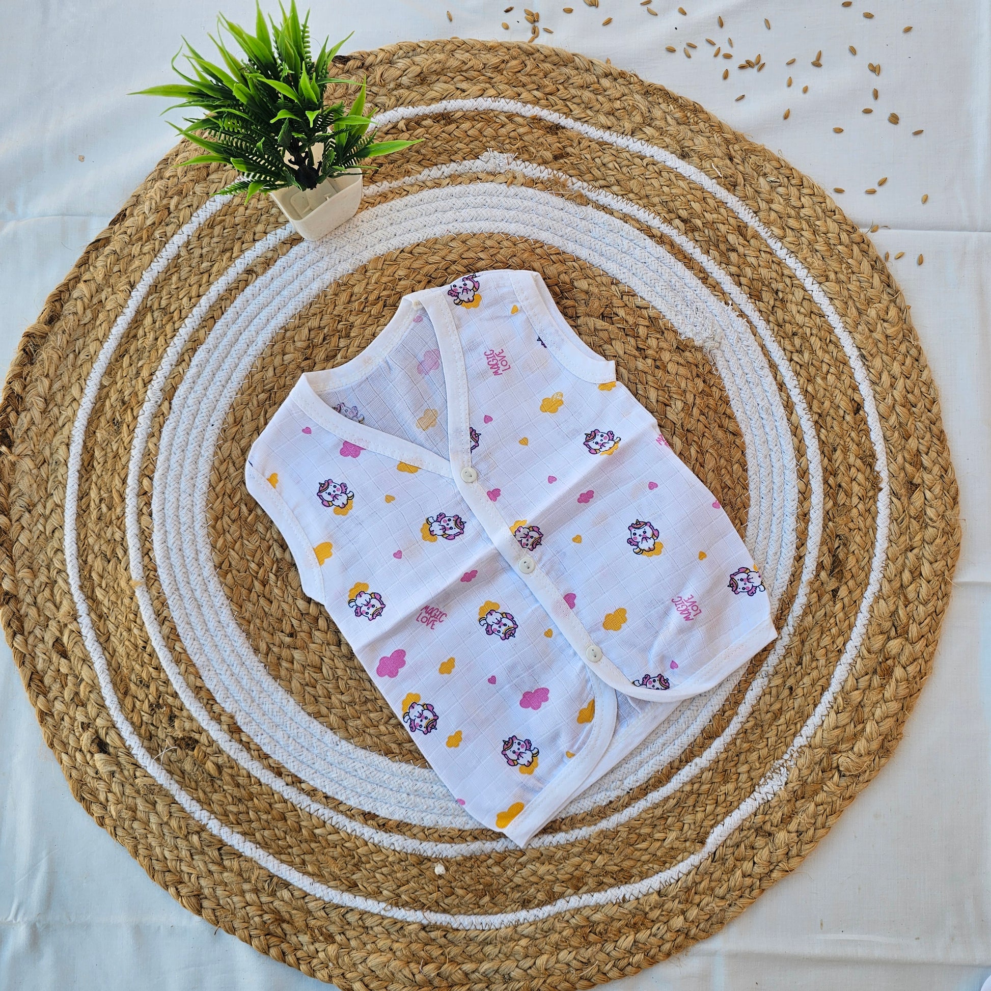 Sleeveless Muslin Jablas with Front Buttons (0-3 Months) โ Soft & Breathable Baby Wear