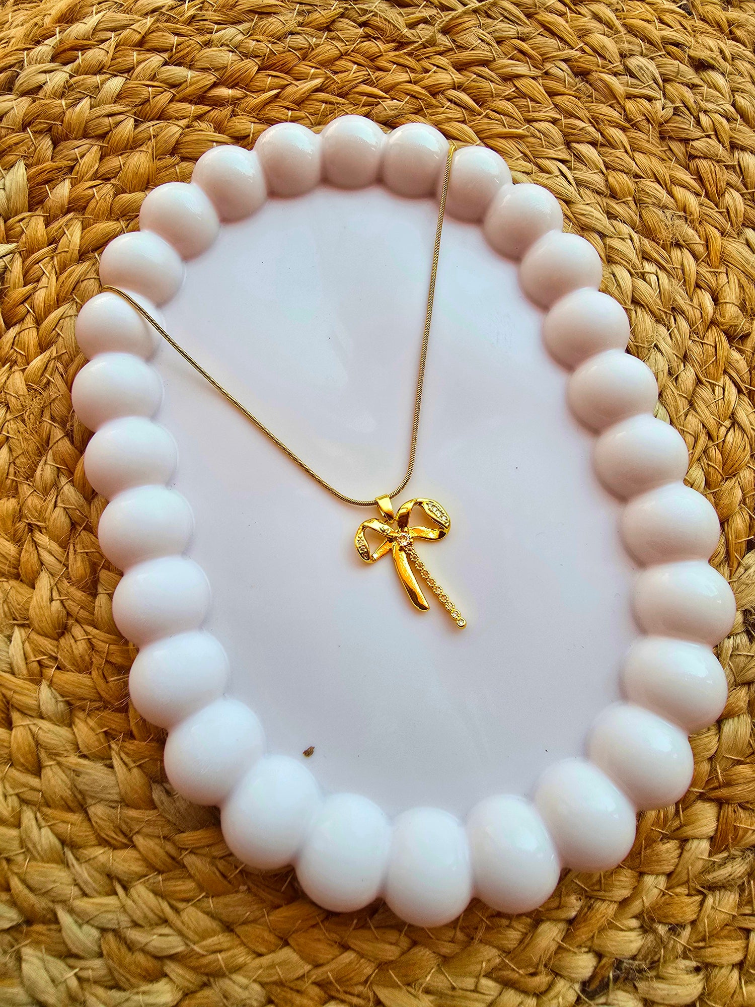 Bow Single line of Stones Pendant with Chain